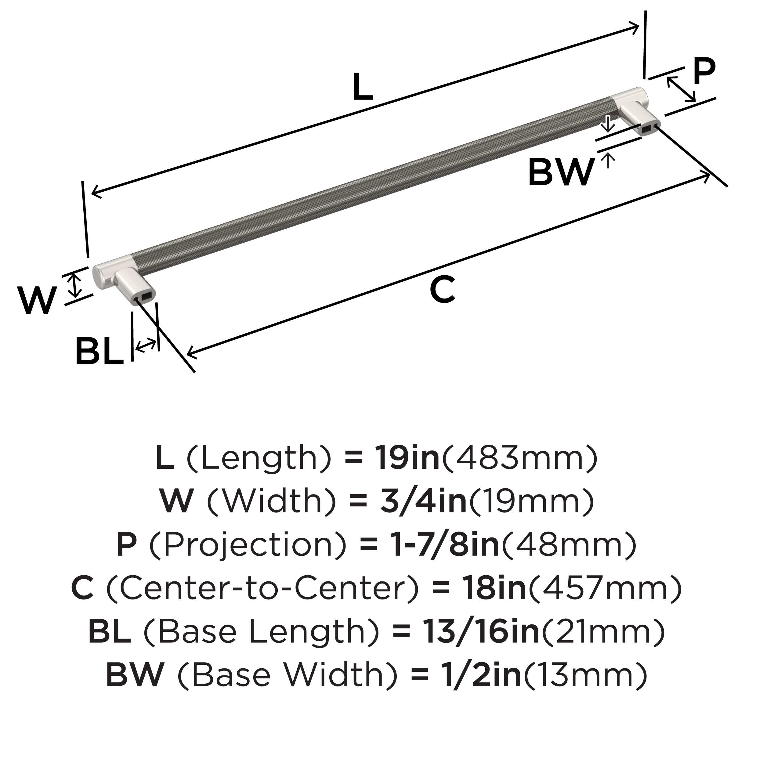 18in(457mm) Center-to-Center Appliance Pull