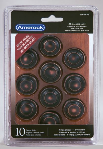 The Amerock TEN1586ORB Inspirations 1-5/16in(33mm) Diameter Knob is finished in Oil-Rubbed Bronze.